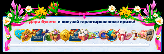 В честь праздника каждый игрок может подарить понравившейся девушке букеты, собрав их из выигранных у цыганки цветов. Чем больше букетов подарят девушке, тем больше будет ее рейтинг цветочности.
