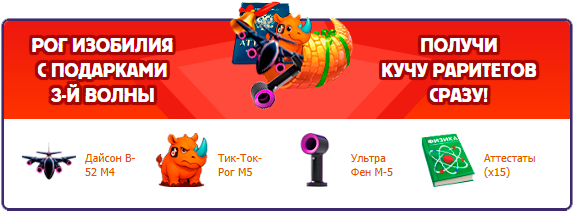 Во всех текущих подарках можно найти рог изобилия с раритетами текущего этапа.