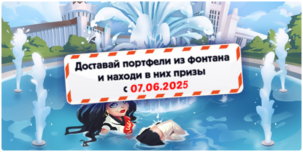 Часть крутых раритетов каким-то образом оказалась в портфелях бывших школьников, которые они побросали в городской фонтан! Находи в подарках аттестаты, которые позволят вам подойти к фонтану и попытаться вытащить портфель с клёвым призом!
